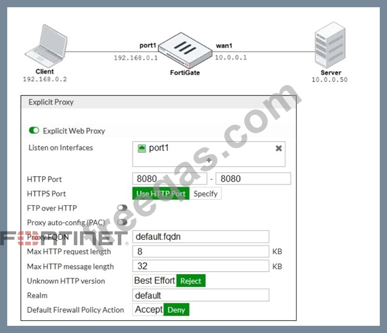The exhibits show a network diagram and the explicit web proxy configuration.