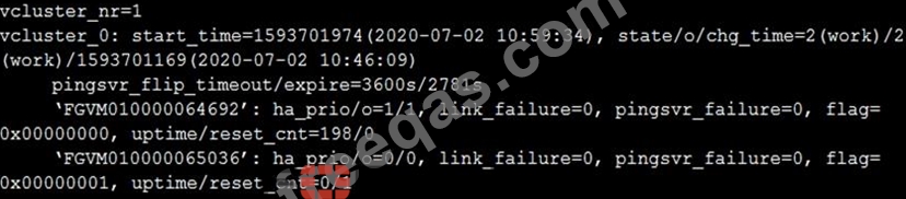 The exhibit displays the output of the CLI command: diagnose sys ha dump-by vcluster.