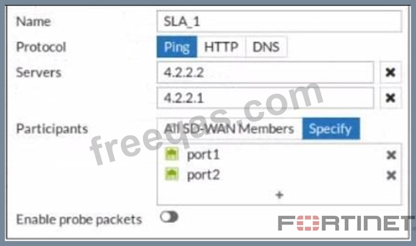 Why is FortiGate not sending probes to 4.2.2.2 and 4.2.2.1 servers? (Choose two.)