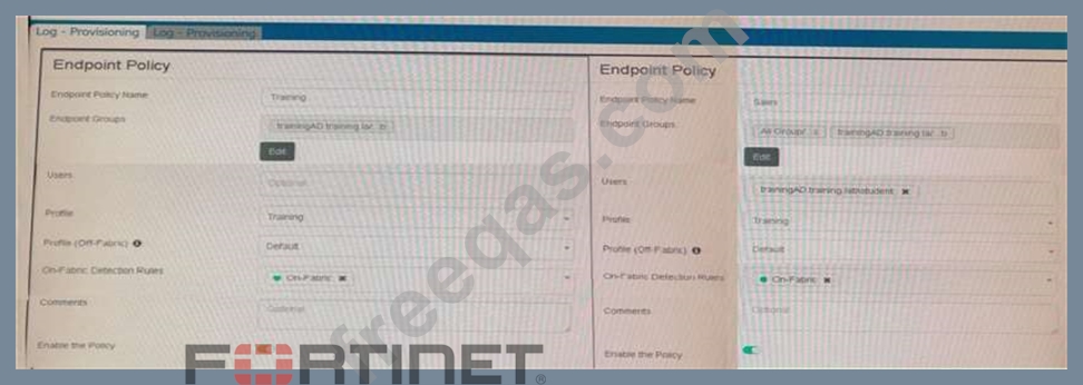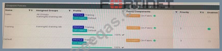 Which policy is applied to the endpoint in the AD group trainingAD?
