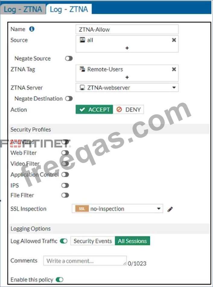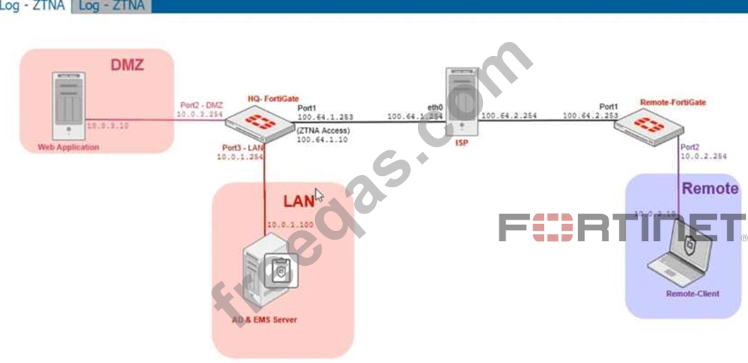 Refer to the exhibits, which show a network topology diagram of ZTNA proxy access and the ZTNA rule configuration.