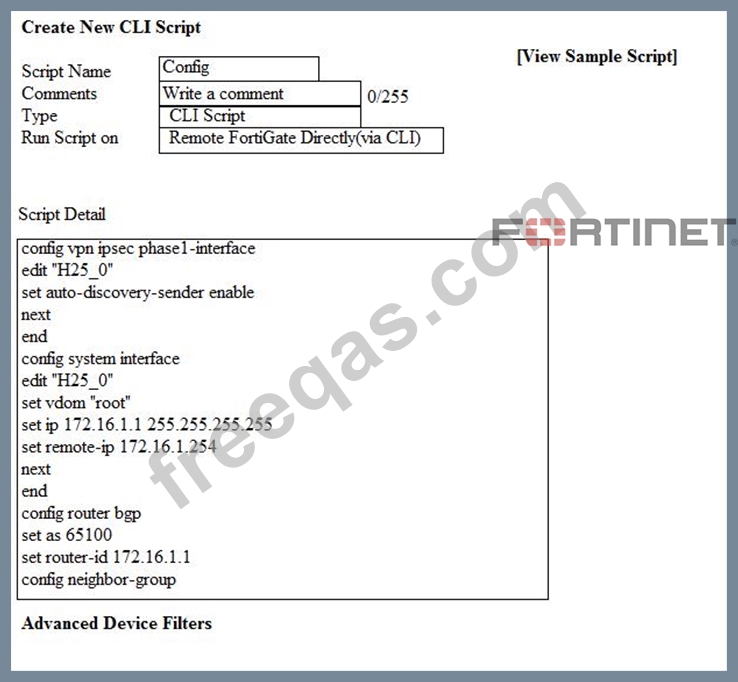 Which two statements are true if the script is executed using the Remote FortiGate Directly (via CLI) option? (Choose two.)