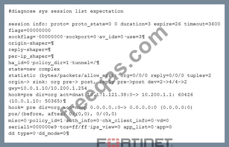 Examine the output of the 'diagnose sys session list expectation' command shown in the exhibit; than answer the question below.