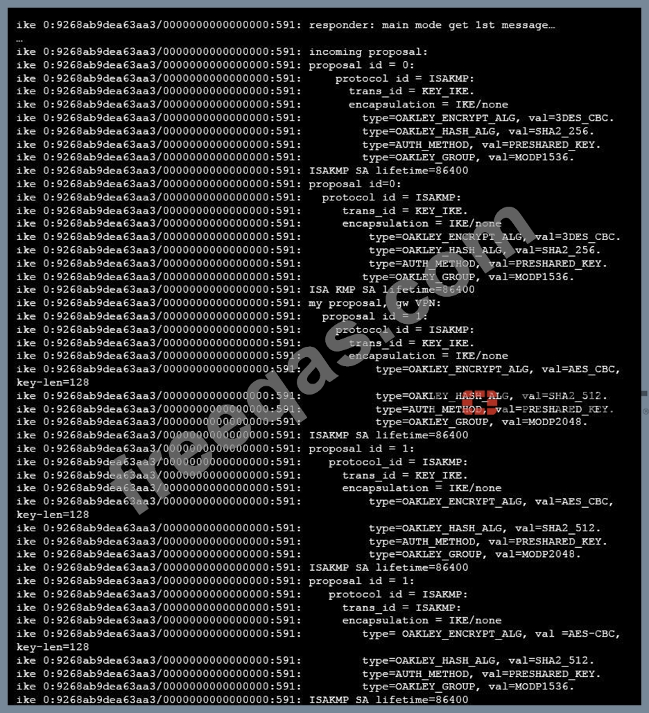 View the exhibit, which contains the partial output of an IKE real time debug, and then answer the question below.