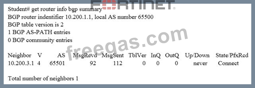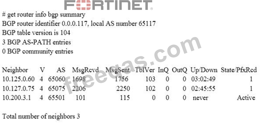 Examine the output of the 'get router info bgp summary' command shown in the exhibit; then answer the question below.