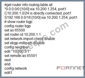 Examine the following routing table and BGP configuration; then answer the question below.