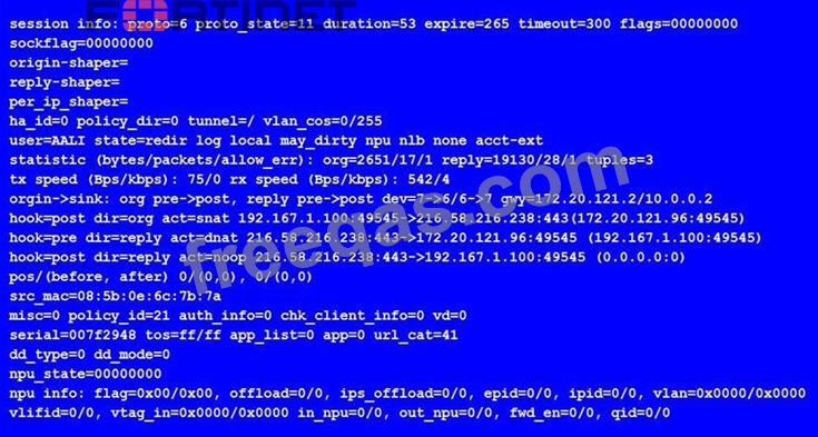 View the exhibit, which contains an entry in the session table, and then answer the question below.
