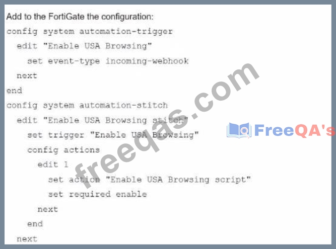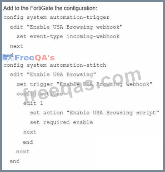 Refer to the exhibit, which shows a FortiGate configuration snippet.