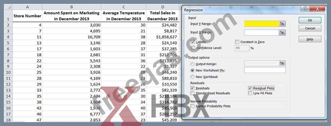 The owner of a chain of convenience stores is concerned that store-level marketing expenditures are not increasing its stores' sales. In addition, the owner believes that an especially cold winter has caused sales to drop. The owner collects data in Dec. 2013 for a random sampling of 50 stores in the Midwestern region of the United States; a portion of this spreadsheet is given below.