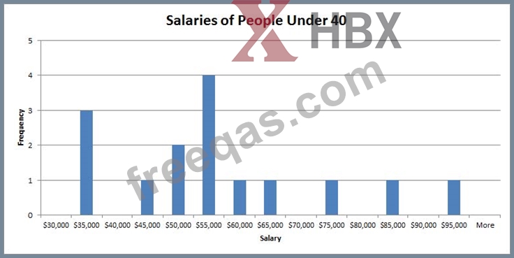 An individual surveys 15 people under the age of 40 and asks for their current salary. The resulting histogram is shown below.