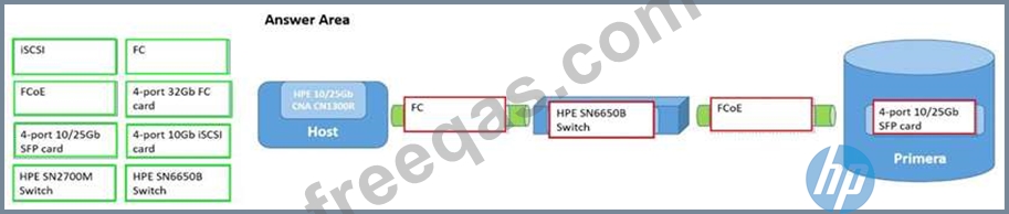 Drag the appropriate component to each box on the diagram to design a new storage network.