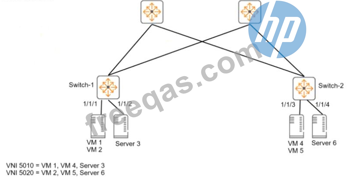 Solution: Work with the server admins to assign a consistent VLAN for VMs 1 and 4. Assign interface 1/1/2 on Switch-1 to the same VLAN.