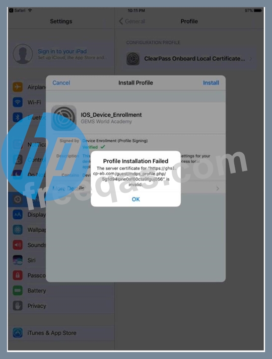 A customer has configured Onboard in his lab ClearPass server and Windows devices work as expected but cannot get the Apple iOS devices to Onboard successfully Where would you look to troubleshoot the issue? {Select two)