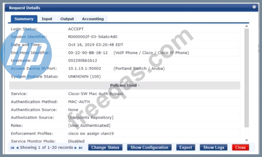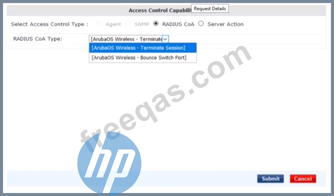 You have integrated the Cisco switch with ClearPass to do MAC-Auth for Cisco IP Phones. The phones connect to the network successfully but when you try to change the status of the device from the access tracker, you see only the ArubaOS Radius terminate session options and not the Cisco vendor terminate session options. What will you check to fix this issue?