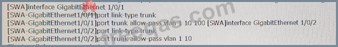 SWA and 5WB are connected through two physical Ethernet links. SWA has the following interface configurations: