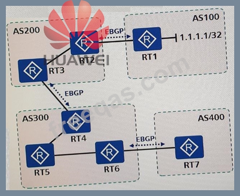 As shown in the following topology, EBGP runs between AS100, AS200, AS300, and per relationships have been established between them. When As400 receives a BGP route to the network segment 1.1.1.1/32 from AS100, which of the following is the correct value of the AS_path attribute?