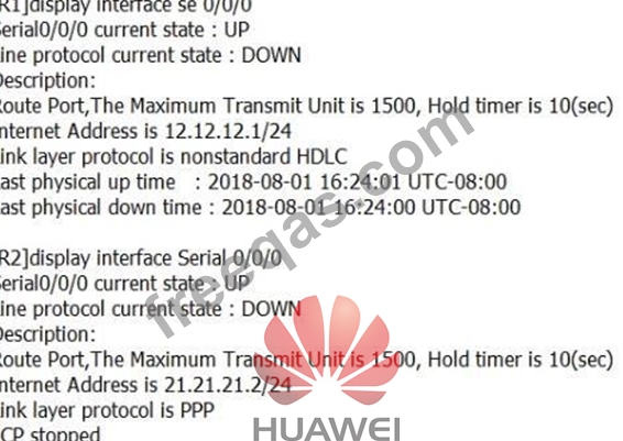 Two routers are connected through serial interfaces, but they cannot ping each other. The following information is displayed when you check the status of the connected interfaces: