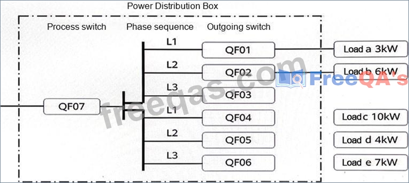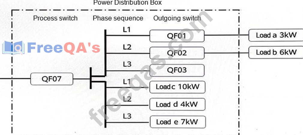 A data center is expanding its capacity and adding five new devices a, b, c, d, and e, with power of 3kW, 4kw, 6kw, 7kw, and 10kw respectively, and a rated voltage of 220V. As shown in the figure below, a new distribution box is configured for 5 devices. Please match the devices c, d, and e with the wiring terminals in the distribution box.