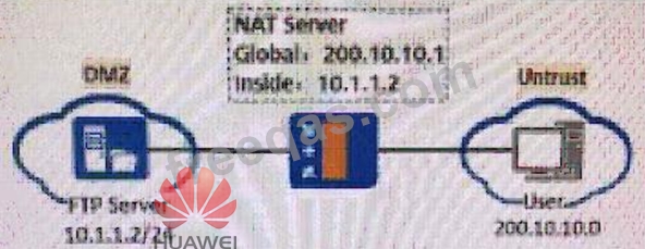 As shown in the figure, a NAT server application scenario isconfigured when the web configuration mode is used
