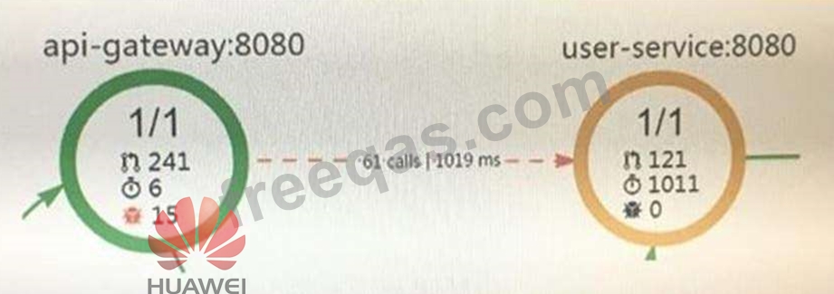 In the topology diagram of Huawei Cloud Application Performance Management Service, each arrow connection represents a call relationship. Different colors represent the Apdex health of the call relationship. The red dotted arrow line shown in the following figure indicates that the call is ()