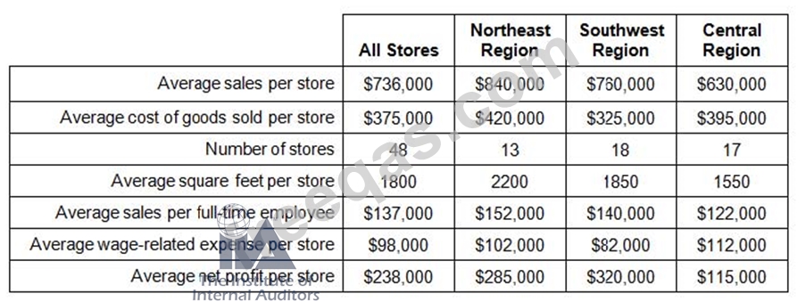 In preparing for an audit of the footwear division of a major retail organization, an internal auditor gathered the following information about the organization's stores: