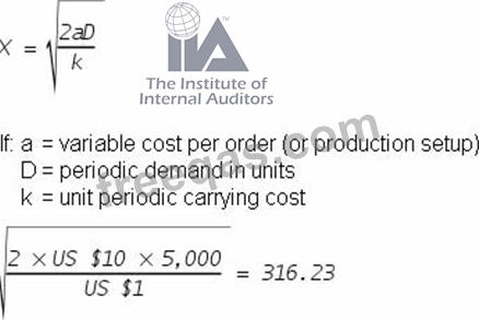 The EOQ (economic order quantity) model calculates the cost-minimizing quantity of a product to order, based on a constant annual demand, carrying costs per unit per annum, and cost per order. For example, the EOQ is approximately 447 units if the annual demand is 10,000 units, carrying costs are US $1 per item per annum, and the cost of placing an order is US $10. What will the EOQ be if the demand falls to 5,000 units per annum and the carrying and ordering costs remain at US $1 and US $10, respectively?