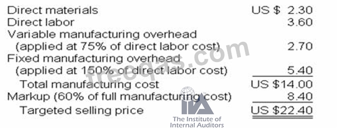 A manufacturer has been approached by a new customer who wants to place a one-time order for a component similar to one that the manufacturer makes for another customer. Existing sales will not be affected by acceptance of this order. The manufacturer has a policy of setting its targeted selling price at 60% over full manufacturing cost. The manufacturing costs and the targeted selling price for the existing product are presented below.