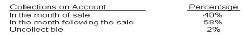 A company} is formulating its plans for the coming year, including the preparation of its cash budget. Historically, 30% of the company's sales are cash sales. The remaining 70% are credit sales with the following collection pattern.
