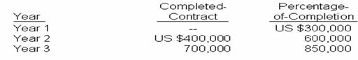Company M. which began operations on January 1, Year 1, recognizes income from long-term construction contracts under the percentage-of-completion method in its financial statements and under the completed-contract method for tax reporting. Income under each method follows: