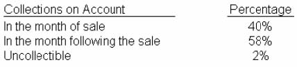 A company is formulating its plans for the coming year, including the preparation of its cash budget. Historically. 30% of the company's sales are cash sales. The remaining 70% are credit sales with the following collection pattern: