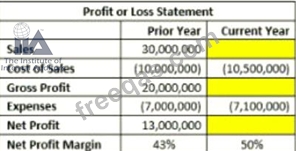 The manager of the sales department wants to Increase the organization's net profit margin by 7% (from 43% in the prior year to 50% in the current year). Given the information provided in the table below, what would be the targeted sales amount for the current year?