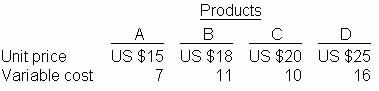 Data regarding four different products manufactured by an organization are presented as follows. Direct material and direct labor are readily available from the respective resource markets. However, the manufacturer is limited to a maximum of 3.000 machine hours per month.