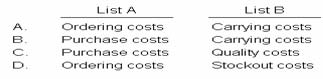When the economic order quantity EOQ) decision model is employed, the List A are being offset or balanced