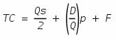 If: TC = total inventory costs Q = size of each order D = annual demand in units F = fixed costs of ordering P = variable cost of placing one order S = holding (carrying) cost per year for one unit of inventory