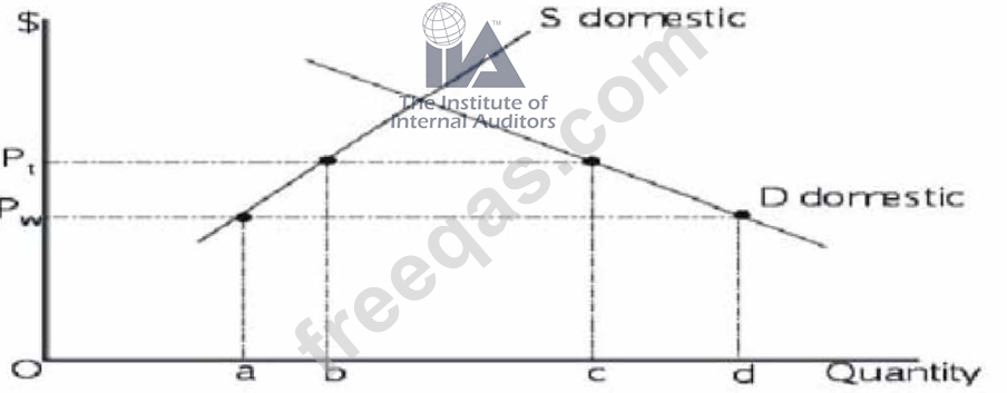 The graph depicts the domestic supply of and demand for a product that is also sold in the domestic market by foreign producers. The domestic producers are protected by a tariff of the amount Pt minus Pw. Bt is the domestic price including the tariff, and Rw is the world price for the product. The effect of the tariff is to: