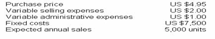 Purchase price US $ 4.95 Using the contribution approach to pricing, which of the following prices is the lowest that can be charged in the short run?