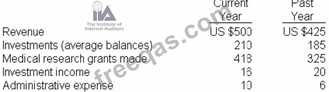 An international nonprofit organization finances medical research. The majority of its revenue and support comes from fundraising activities, investments, and specific grants from an initial sponsoring corporation. The organization has been in operation over 15 years and has a small internal audit department. The organization has just finished a major fundraising drive that raised US $500 million for the current fiscal period.