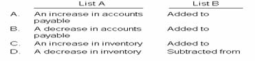 In the determination of cost of goods sold, <List A> must be <List B> cash payments for goods along with other adjustments.