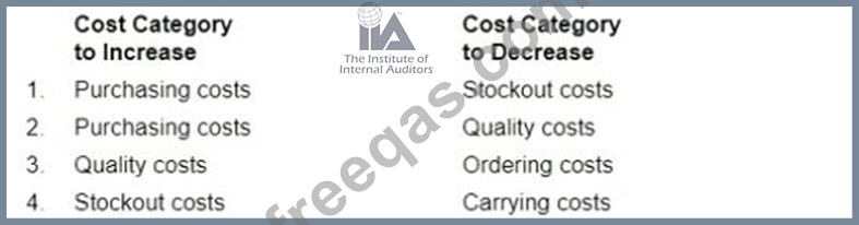 If a just-in-time purchasing system is successful in reducing the total inventory costs of a manufacturing company, which of the following combinations of cost changes would be most likely to occur?