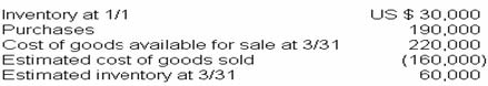 The gross profit margin is normally 200 of sales. What is the estimated cost of the merchandise inventory at March 31 of the current year?