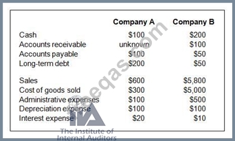 Presented below are partial year-end financial statement data (000 omitted from dollar amounts) for companies A and B:
