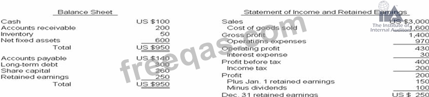 The current ratio is determined by dividing current assets by current liabilities. The acidtest ratio is determined by dividing quick assets by current liabilities. At December 31. Year 1. The current ratio is 6 to 1 [(US $40,000 + $120,000 + $200,000) - $60,01101. December 31. Year 2, the current ratio is 4.3 to 1 [(US $30,000 + $100,000 + $300,000) -$100,000]. Hence, there was a decrease in the current ratio. At December 31, Year 1, the acid-test ratio is 2.667 to 1 [(US $40,000 + $120,000) - $60.000]. At December 31, Year 2, the acid-test ratio is 1.3 to 1 [(US $3:0,000 + $100,000) - $100,000]. Thus, the acidtest ratio also declined. An entity's financial statements for the current year are presented below: