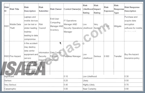 The following is the snapshot of a recently approved IT risk register maintained by an organization's information security department.