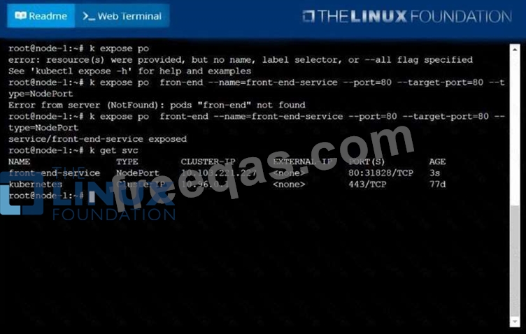Create and configure the service front-end-service so it's accessible through NodePort and routes to the existing pod named front-end.