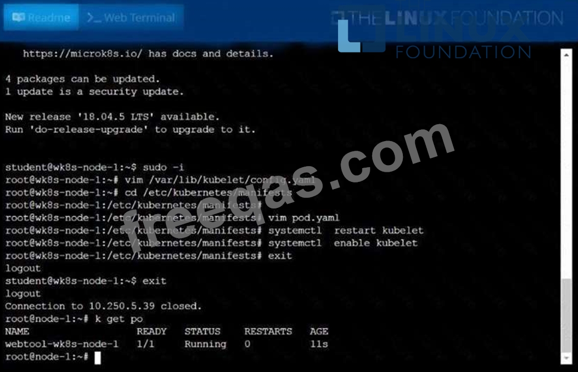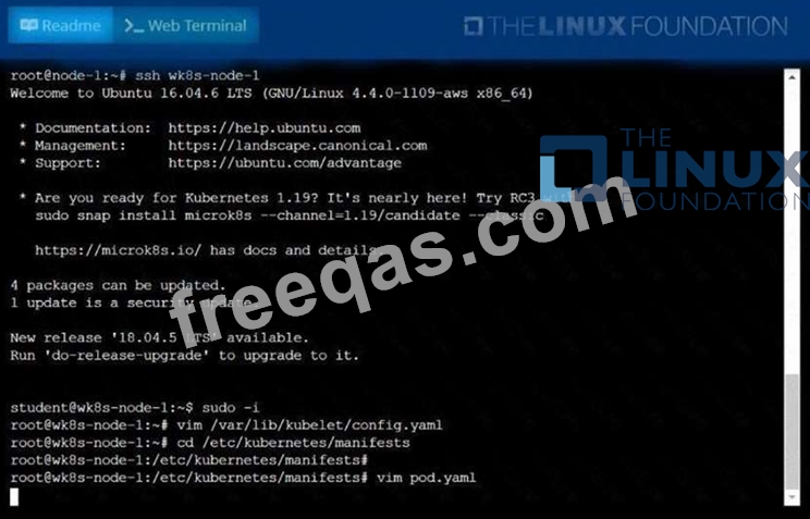 Configure the kubelet systemd-managed service, on the nodelabelled withname=wk8s-node-1, tolaunch a pod containing a singlecontainer of Image automatically. Any spec filesrequired should be placed in the/etc/kubernetes/manifests You canssh to theappropriate node using:
