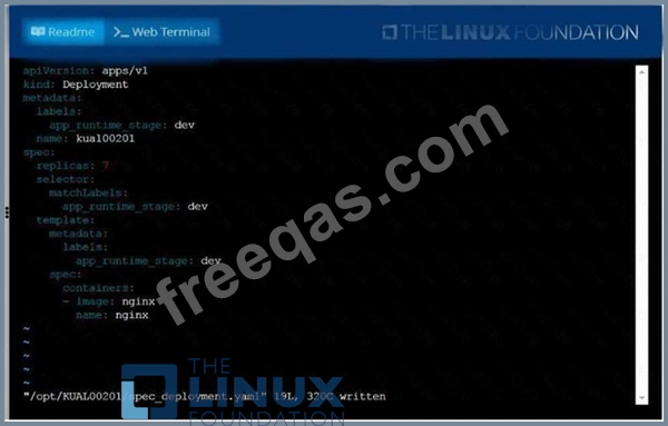 * Launch 7 replicas of the nginx Image with the labelapp_runtime_stage=dev