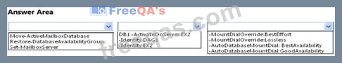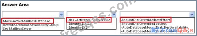You need to recommend a procedure to allow administrators to mount the mailbox database copies on EX2 if EX1 fails. The recovery point objective (RPO) for mailbox data is 200 MB.