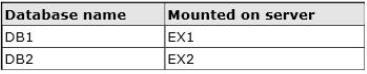 The active copy of DB1 is located on EX1. There are typically 100 MB of log files queued on EX1.