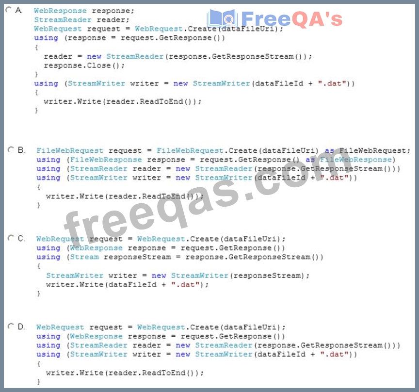 You need to complete the implementation of the ProcessFile() method. Which code segment should you use?