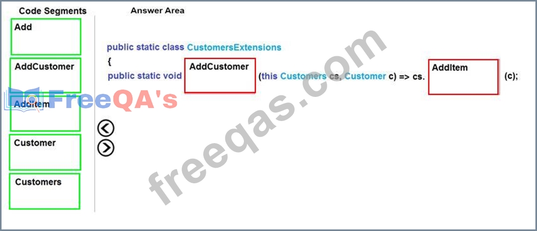How should you complete the relevant code? (To answer, drag the appropriate statements to the correct locations in the answer area. Each statement may be used once, more than once, or not at all. You may need to drag the split bar between panes or scroll to view content.)